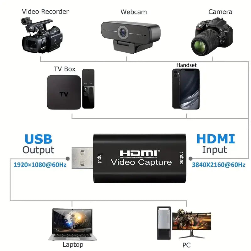 Elevate your streaming and recording experience with our 4K HDMI Video Capture Card. Designed for versatility, this device allows you to effortlessly connect your camera, gaming console, or other HDMI output devices to your computer via USB 2.0.
