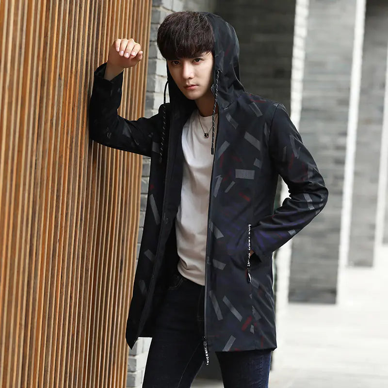 Embrace the chill of winter with our stylish and versatile men's jacket, designed to keep you warm while ensuring you look effortlessly cool. This medium-length coat, with a trendy length of 65cm to 80cm, is perfect for the modern youth, aged 18-24, who values both comfort and fashion.